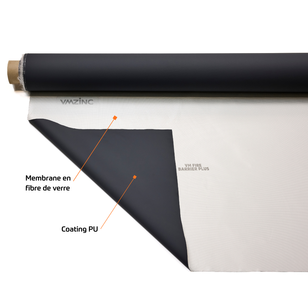 VM FIRE BARRIER PLUS a été conçu comme le complément parfait du ZINC PLUS, le laminé de zinc muni d’un revêtement protecteur qui empêche la corrosion au contact de l’isolation.