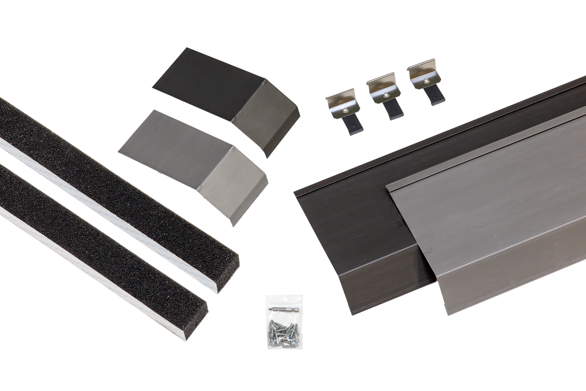Le raccord sur mur G3 est une solution clé en main composée de 5 pièces, conçue pour assurer une jonction étanche et esthétique entre un mur et une couverture en joint debout VMZINC.