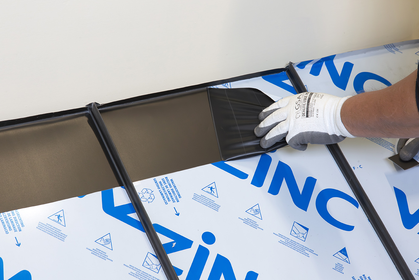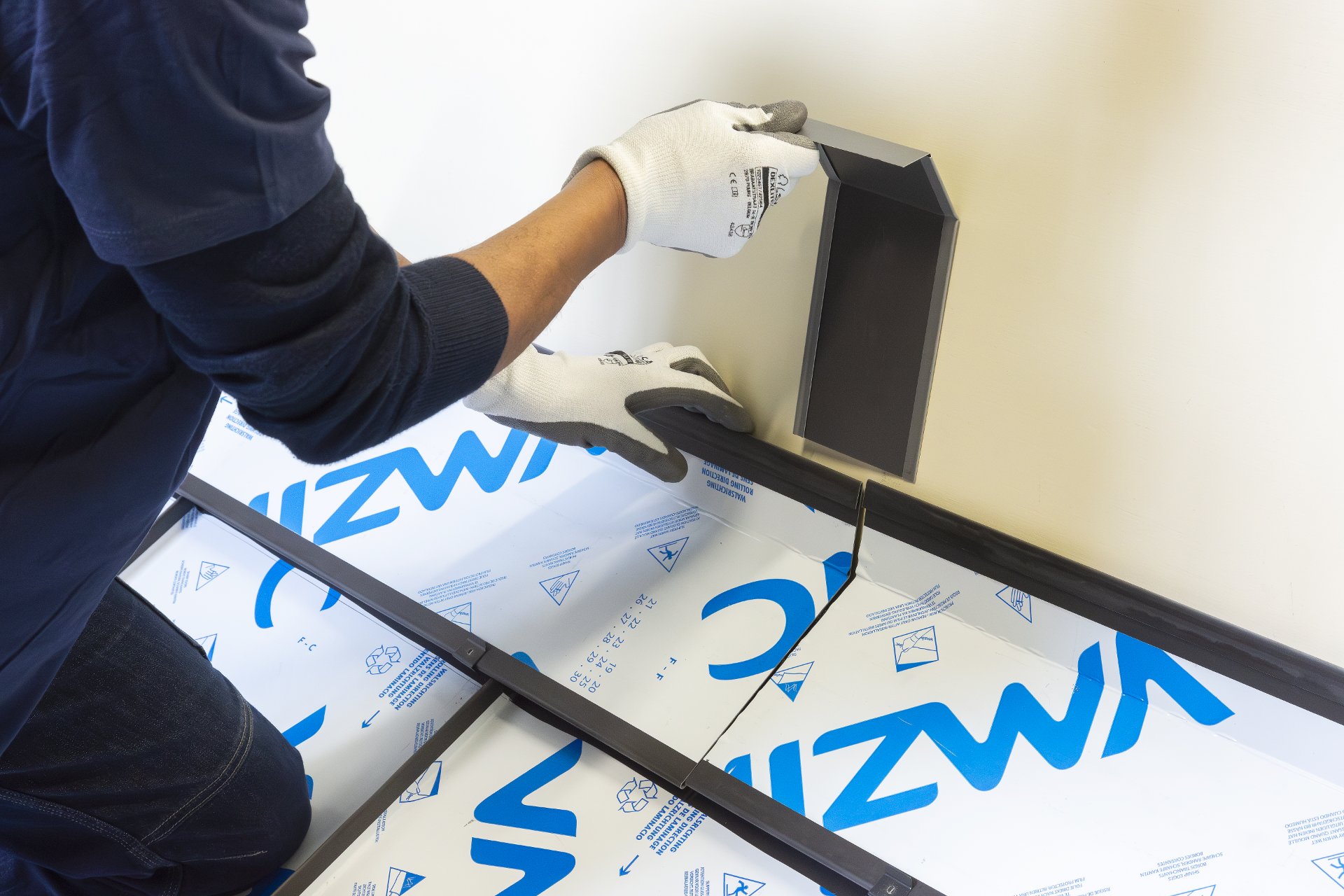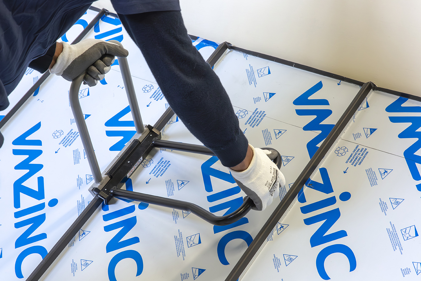 Positionner et placer la bande porte solin à biseau VMZINC sur le raccord G3.