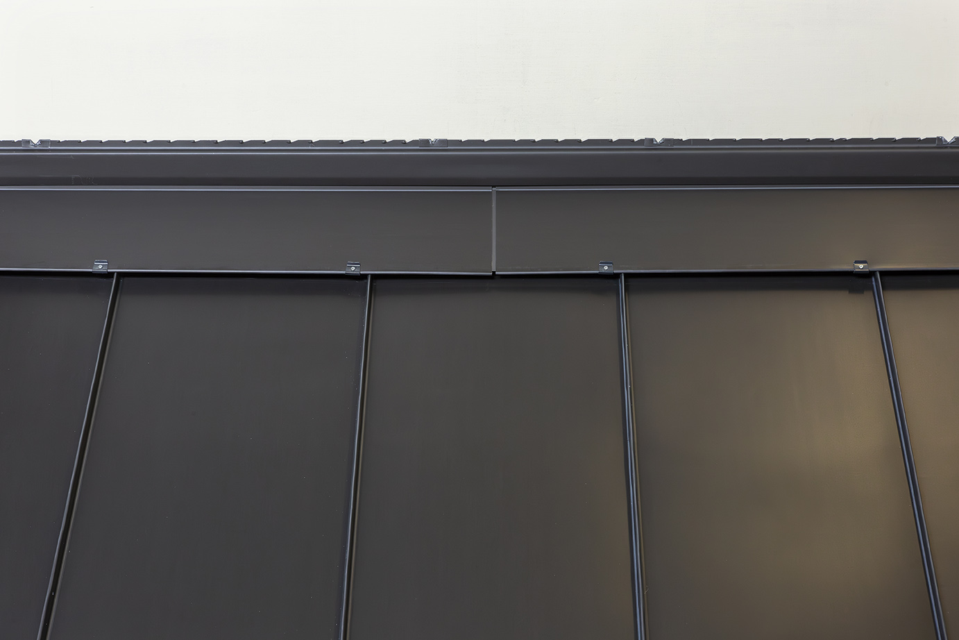 - Installation rapide : plus besoin de coulisseaux de tête en finition haute des bacs à joint debout.