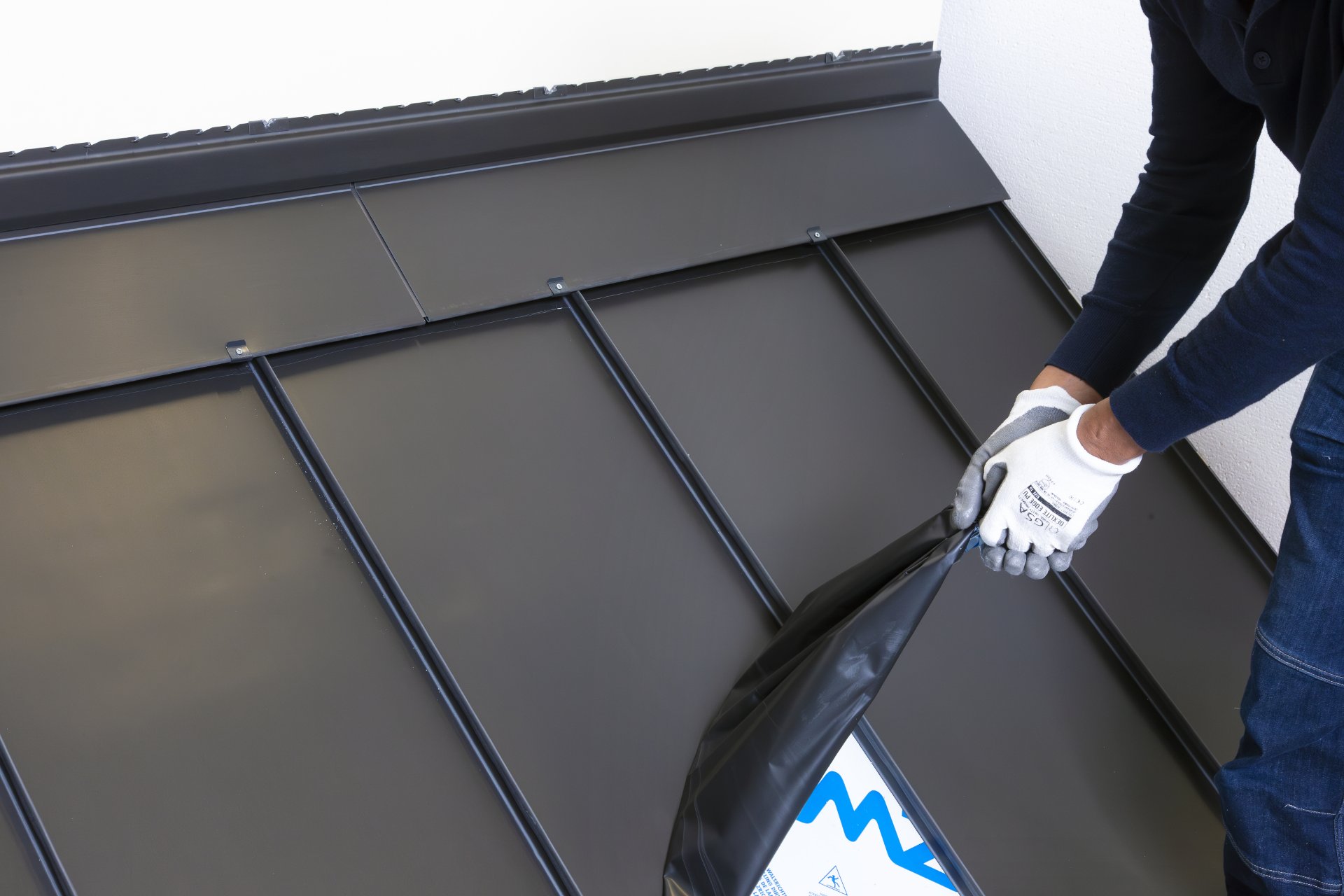 - Clip de fixation exclusif (modèle déposé) : conçu pour s’insérer facilement dans le joint debout, il assure une mise en œuvre rapide et fiable.