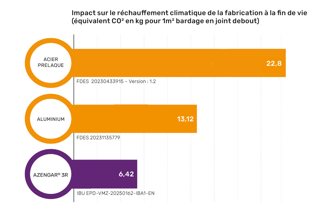 Avec une empreinte carbone de seulement 0,70 kg de CO2 par kg de zinc (base EPD-VMZ-20250162-IBA1-EN), AZENGAR 3R établit une nouvelle norme dans l'industrie.