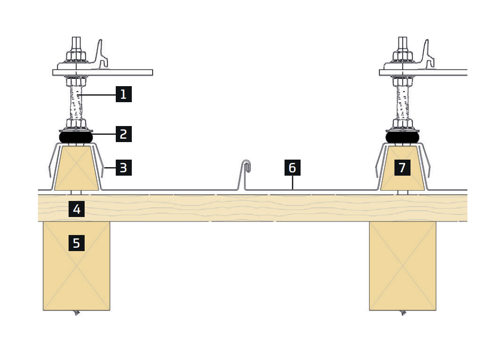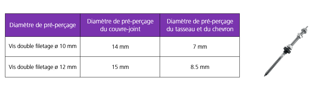 • Les caractéristiques des vis (quantité et diamètre, taille du pré-perçage, profondeur de l’ancrage) sont de la responsabilité de l’entreprise ou du bureau d’études associé au projet et sont définies en fonction de la charge des panneaux solaires.