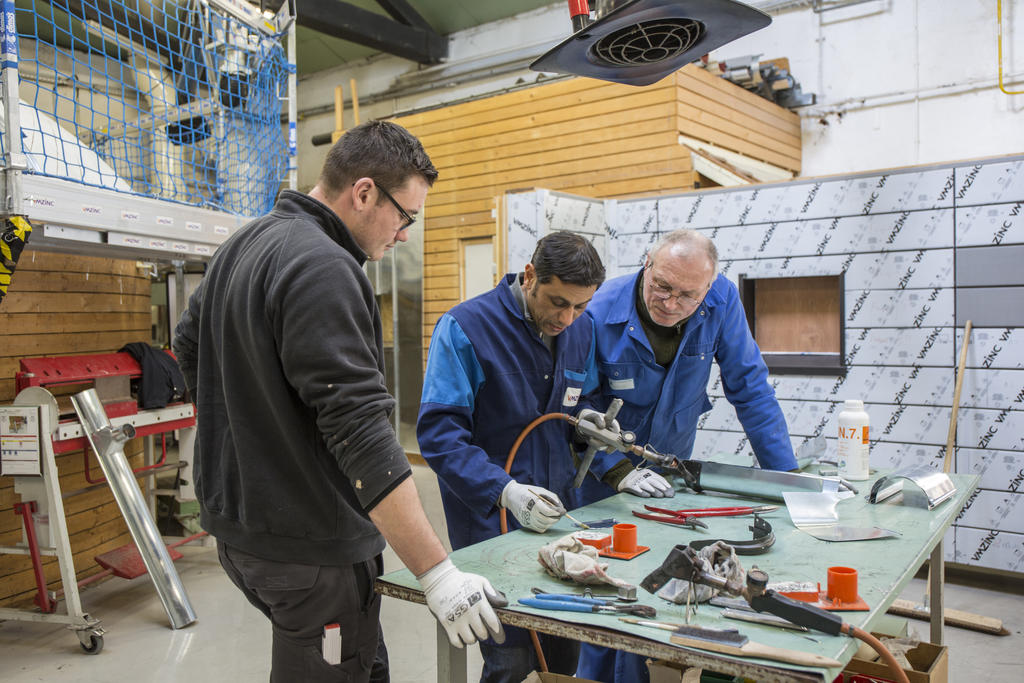 Na een algemene voorbereidende opleiding kan je binnen ons VMZINC-programma opteren voor een reeks van specialisaties. We helpen zinkleggers om zich te verdiepen in het solderen, het plaatsen van staande naad en van gevelpanelen.